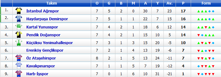 16:30 Kartal Yunus 1-1 İstanbul Ağrıspor (Kartal Yunus)
