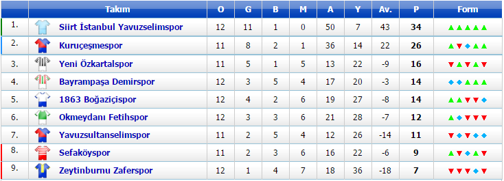 12:00 Siirt İstanbul Yavuzselim 3-0 Sefaköy (Fatih Mimarsinan)