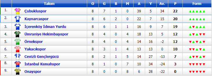 10:00 Tuzla Şifaspor 0-0 Anadolu Üsküdarspor (Orhanlı) (40. dakikada konuk ekipten bir futbolcu hakeme tokat atınca yarıda kaldı)