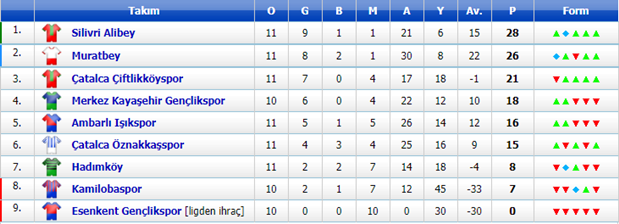 14:30 Muratbey 4-2 Hadımköy (Çatalca)