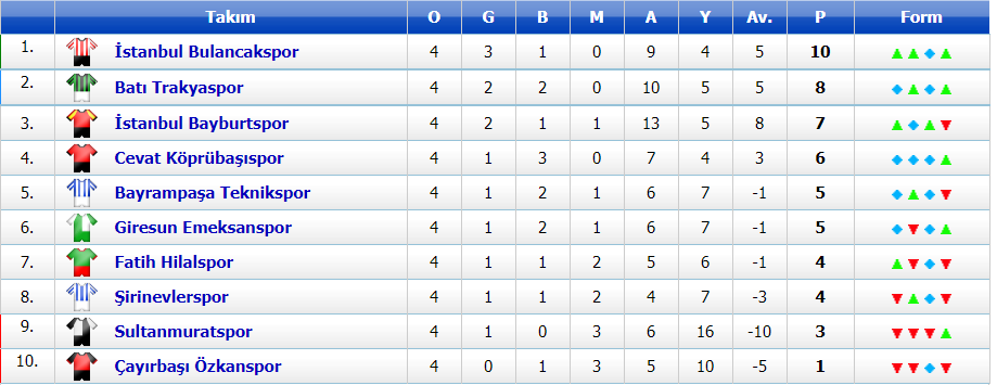 12:30 Giresun Emeksan 2-1 İstanbul Bayburtspor (Alibeyköy)