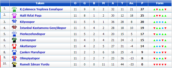 12:00 Kartal Çavuşoğluspor 2-1 İstanbul Sitespor (Kartal Yunus)