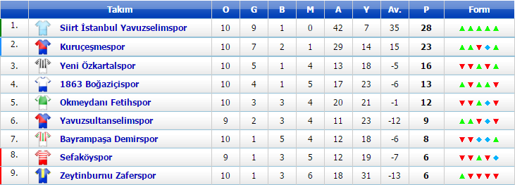 12:30 Siiirt İstanbul Yavuzselimspor 5-0 1863 Boğaziçispor (Fatih Mimarsinan)