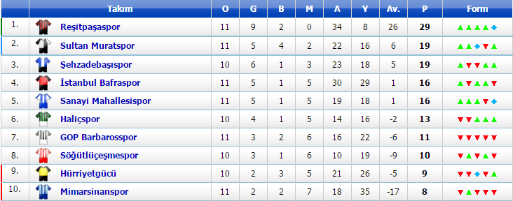 14:30 Hürriyetgücü 2-1 İstanbul Bafra (Nurtepe)