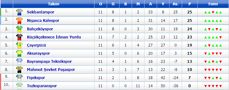 14:30 Tozkoparanspor 1-9 Nişanca Kalespor (Bakırköy Bld. 2 No’lu Saha)