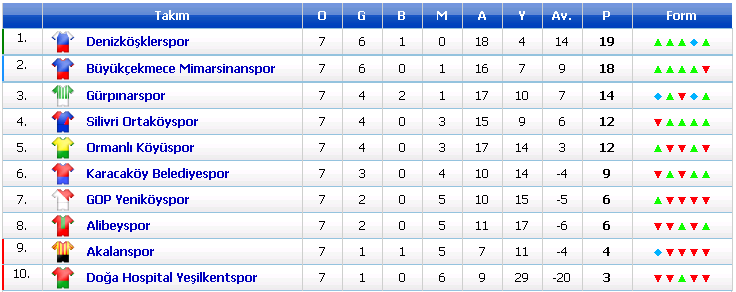 14:30 Denizköşklerspor 0-1 Büyükçekmece Mimarsinanspor (Avcılar Bld.Atatürk Stadı)