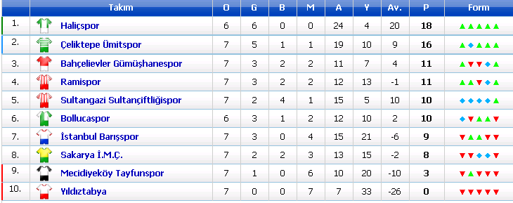 13:00 Çeliktepe Ümitspor 3-1 İstanbul Barışspor (Kağıthane Bld.Yahya Kemal Sahası)