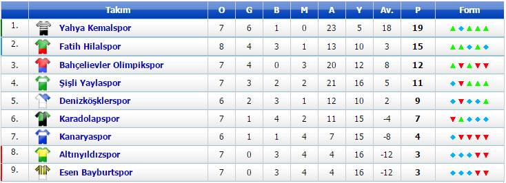 13:30 Denizköşkler 3-0 Kanarya (Avcılar Firuzköy)(42.Dakikada Kanaryaspor lılar Hakeme Saldırınca maç tatil edildi.)
