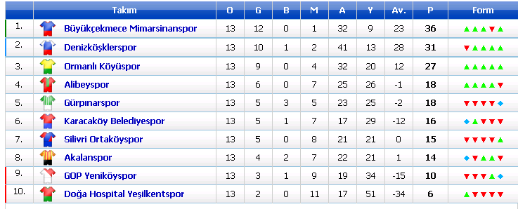14:30 Denizköşklerspor 5-2 Alibeyspor (Avcılar Bld.Atatürk )