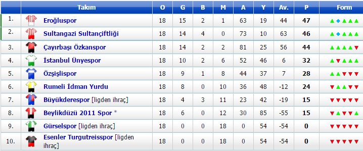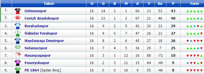 16:00 Ulusspor 1-5 Rumelikavağıspor (Seyrantepe)