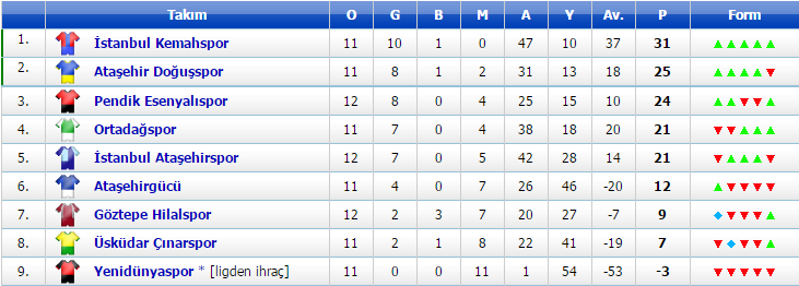 –.– Pendik Esenyalıspor 3-0 Yenidünyaspor (Hükmen)