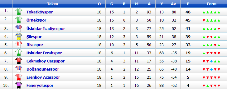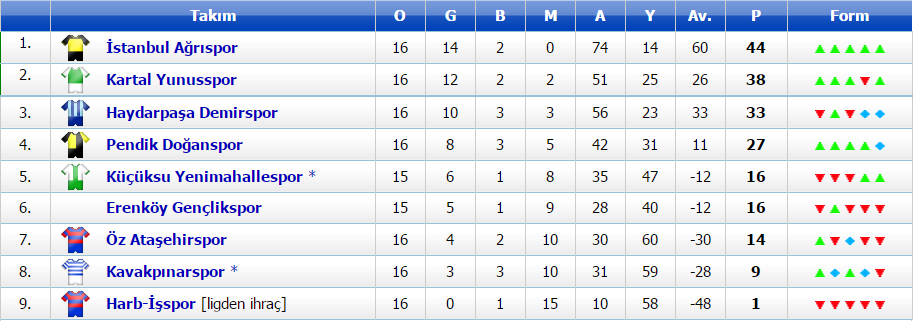 –.– Erenköy Gençlikspor 0-3 İstanbul Ağrıspor (Hükmen)