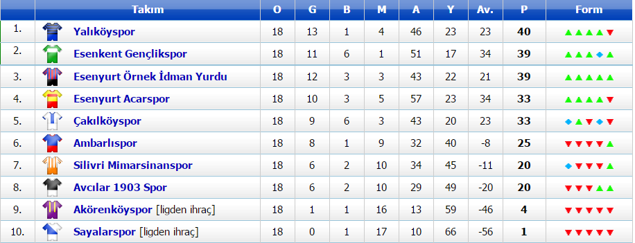 16.00 Esenkent Gençlikspor 4-0 Yalıköyspor (Avcılar Atatürk)