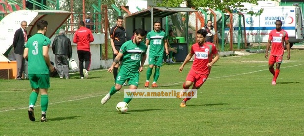 İki takımında oyunu orta sahadan kabullenip kalelerde fazla pozisyon üretemedi karşılaşmada ilk atak Mudanyaspor’dan geldi. 16.dakikada Yunus’un sert şutunu kaleci kornere çelerek gole izin vermedi. Karşılaşmayı izlemeye gelenlerin adeta uyuduğu ilk yarının uzatma dakikalarında topla ceza sahasına giren Enes kaleci tarafından düşürülünce maçın orta hakemi peyaz noktayı gösterdi. Atışı kullanan Yunus kaleciyi sola yatırarak topu sağ köşeden ağlarla buluşturunca Mudanyaspor soyunma odasına 1-0 önde girdi.