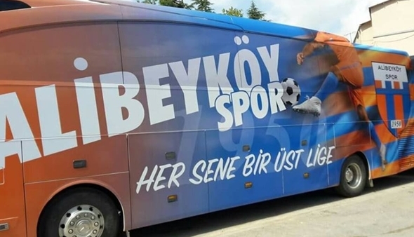 Başkan Saka ve Yönetimi Kulübe bir jest daha yaptılar ve Kulübe tahsis edilen otobüsü de Alibeyköyspor renkleri ile giydirerek yeniden Profesyonel Liglere dönen ve hedefini her sezon bir üst lig olarak belirleyen turuncu-mavililere güzel bir hediye daha verdiler.