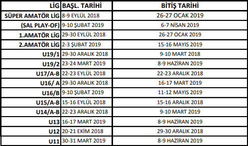 TFF İstanbul İl Temsilciliğinden yapılan açıklamaya göre, 1. Amatör Lig 29 Eylül 2018 tarihinde başlayacak. 2. Amatör Lig ise 2 Şubat 2019 günü başlayacak.