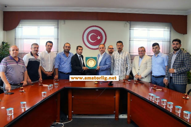 Sayar ve yönetimden oluşan komisyon Bağcılar Belediye Başkanı Lokman Çağırıcı’ya plaket ve takım forması hediye edildi.