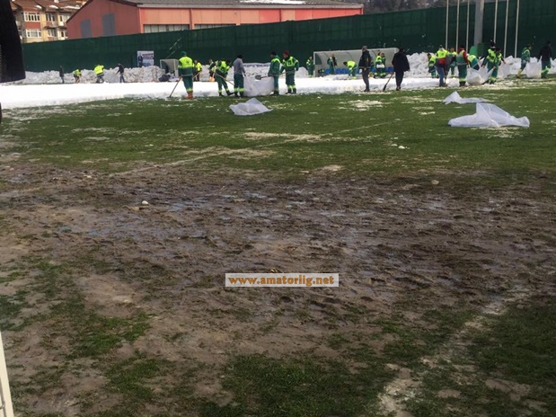 Saha zeminine zarar vermemek için stada araç sokmayan Sarıyersporlular, Belediye personelinin gösterdiği büyük özverisi ile zemin kardan arındırıldı. Belediye Başkanı Şükrü Genç’in de çalışmaları yerinde takip ettiği ve zeminin maç oynamaya elverişli bir hale getirildiği öğrenildi.