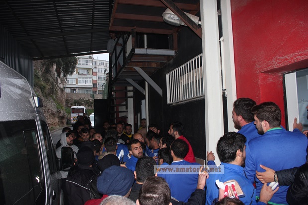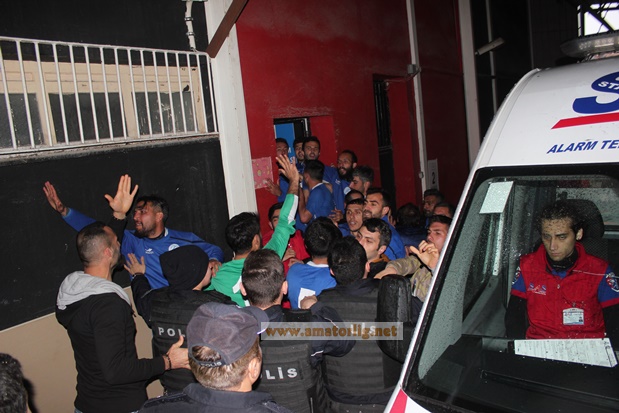 Yeniçarşılı futbolcular soyunma odalarının olduğu koridorda rakiplerini sinirlendirecek şekilde tezahürat yapınca ortalık karıştı. Araya giren emniyet görevlileri futbolcuları soyunma odasına soktu.