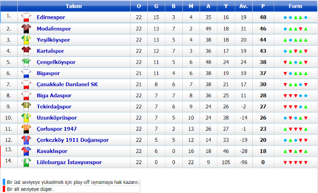 14.00 Edirnespor 0-0 Biga Adaspor (25 Kasım)