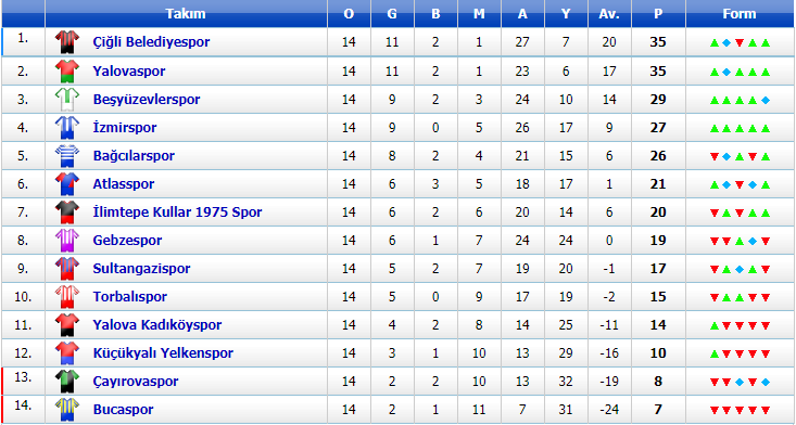 14:00 Çiğli Belediyespor 3-0 Bucaspor (Çiğli Belediye Atatürk)