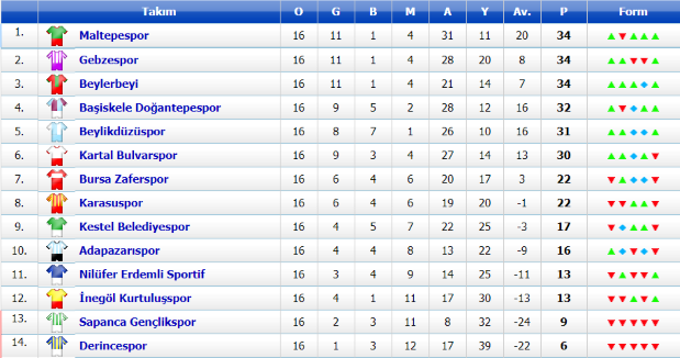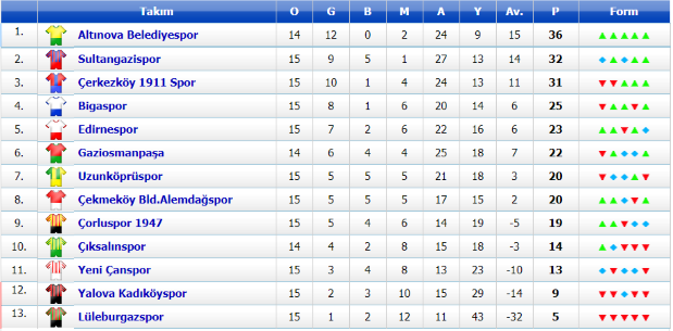 14.00 Çengelköyspor 1-0 Alibeyköyspor (Dün oynandı)