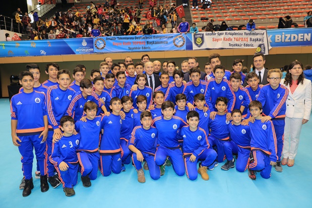 Törende konuşan Başkan Kadir Topbaş, ulaşım ve altyapı yatırımlarının yanı sıra kültür sanat ile spora da çok büyük yatırımlar yaptıklarını belirterek, en önemli yatırımın ülkenin geleceği olan çocuk ve gençlere yapılan yatırım olduğunu söyledi. Dağıtılan malzemelerin spor kulüplerine hayırlı olmasını ve başarılar getirmesini dileyen Kadir Topbaş, şöyle konuştu;