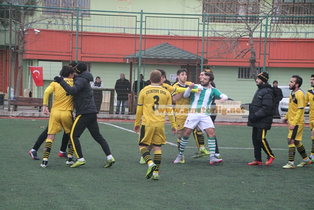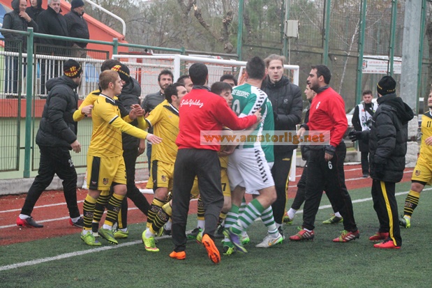Hakemin ilk yarıyı bitiriş düdüğü ile iki takım futbolcuları birbirlerine girdiler. İki takım yöneticilerinin duyarlı davranmaları ile sona eren kavgayı maçın hakemi Selim Özen’de izleyerek Şile Yıldızspor’dan Ömer Yurdakul’u Çeliktepespor’dan Yahya İntaş’ı ihraç ettiğini açıkladı.
