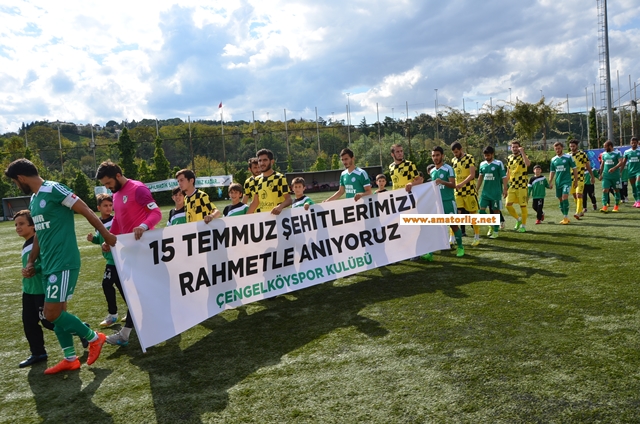 Beylerbeyi Stadındaki ligin ilk maçında iki takım da sahaya “15 Temmuz Şehitlerini rahmet ile anıyoruz” yazılı pankart ile çıktılar. Çengelköyspor U12 takımı oyuncuları da seronomide yer aldılar.