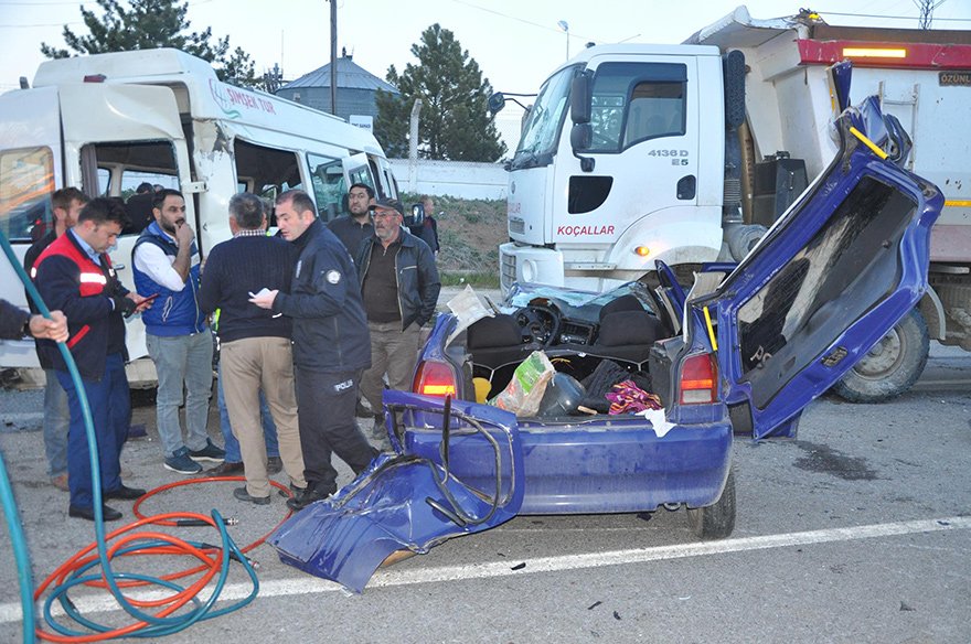 Yozgat’ın Sorgun ilçesinde, otomobil ile servis minibüsünün kafa kafaya çarpışması sonucu 3 kişi hayatını kaybetti, 8 kişi yaralandı.