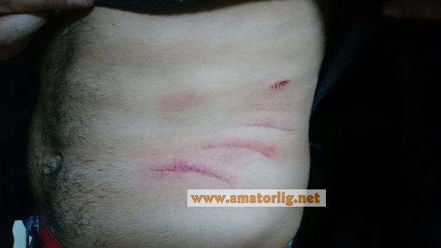 “Maç içinde futbolcularımız resmen dayak yediler. Hakem, 3-4 seyircisinin etkisinde kaldı ve maçı kontrolünden kaçırdı. Bize sadece Saha Komiseri yardımcı oldu. 90+4’de biz 4-2 öne geçince, bir taç sonrasında iki futbolcunun itiş kakışının ardından rakibin 5 ve 2 numaralı futbolcuları, futbolcumuz Enes’in kafasına ve karnına defalarca vurdular. Sadece 6 ve 18 numaralı iki futbolcular bizi korumaya çalıştılar. Bir de Yöneticileri olan Recep adında birisi bizi kollamaya çalıştı. Maçta rakipten 200 kişi civarında taraftar vardı. Bizim futbolcumuz dap edilmeye başlayınca can havliyle telleri tırmandılar. Futbolcularımızın bazıları olayın şokuyla ağlamaya başladılar. Hakem olayları bir süre izledi sonra içeri girdi. Başkanları ‘bize ilk maçta neler yaptınız?’ diye bağırıyordu. Halbuki ilk maçta hiçbir şey olmadı. Biz, sahanın kapısının yanında kömürlük ve mahzene benzer bir yere saklanmak zorunda kaldık. Sadece 2 tane Polis vardı, bizi koruyamadılar. Yöneticimiz Basri Bey’de darbe aldı. Yunus timleri geldi. Bizi onlar çıkarttı. 3 tane Ambulans sahaya geldi. Enes, Murat ve Koray isimli futbolcularımız darp raporu aldılar.