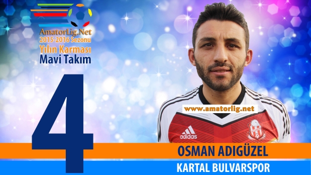Futbola 2000 yılında Pendikspor alt yapısında başlayıp sırası ile Sultantepespor, Dolayobaspor, Ataşehir Çamolukspor, İdealtepespor, Ataşehir Çamolukspor, Adalarspor, Ataşehir Çamolukspor formalarını giydikten sonra bu sezon başında Rıdvan Elmastaşlar’ın ekibi Kartal Bulvarspor’a transfer olan 1987 doğumlu stoper Osman Adıgüzel takımının bu sezon oynadığı 33 maçın tamamında forma giyerek büyük bir istikrar örneği sergiledi. Tecrübeli stoper oynadığı 33 maçta 6 defa meşin yuvarları rakip filelere gönderme sevinci yaşadı.