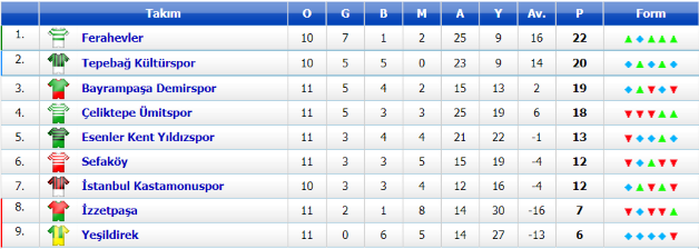İstanbul 1. Amatör Lig 12. Hafta 1, 3 , 5 , 7 , 9 , 11 , 13, 15 ve 17.