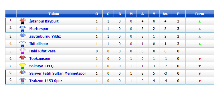 İstanbul 1. Amatör Lig 29 Eylül Cumartesi Sonuçları