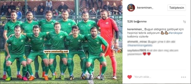 Sosyal medya hesabı Instagram’da duygularını dile getiren tecrübeli eldiven, kadro fotoğrafı paylaştığı mesajında “Bugün aldığımız galibiyet için hepinizi tebrik ediyorum. ???? #erokspor kalbimiz sizlerle” mesajı ile takım arkadaşlarını kutladı.