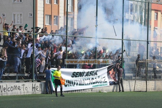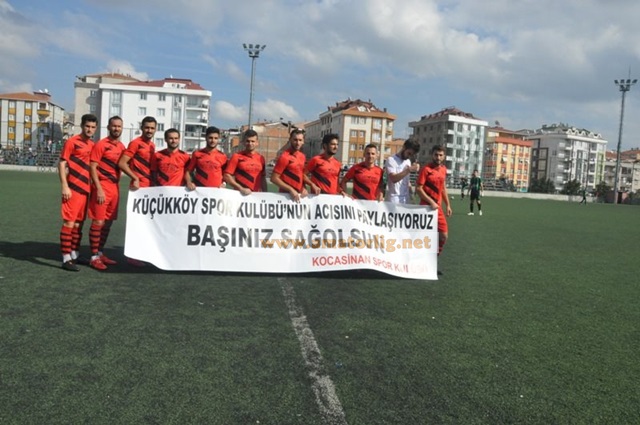Maça Kocasinanlı futbolcular çıkış tünelinden Küçükköyspor’a taziye mesajı olarak pankartla çıkış yaptı. Her iki takım taraftarı da nezaketen birbirlerini alkışladı ve tezahürat yaptı.