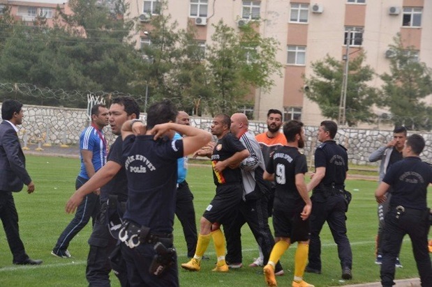 Şırnak ile Silopispor arasında oynanan BAL yükselme maçı Şırnak’ta yaşanan terör olaylarından dolayı bugün saat 15.00’da Siirt Şehir Stadı’nda oynandı. 25’inci dakikada Silopispor’un attığı golle ilk yarı 1-0’lık skorla tamamlandı. İlk yarının bitiş düdüğünün ardından her iki takım futbolcularının birbirlerine girmesiyle saha bir anda karıştı. Kavga, daha sonra polis ile her iki takım yöneticilerinin araya girmesiyle durdu. Maçın 85’inci dakikasında rakibine müdahale eden Şırnaksporlu bir sporcu, ikinci sarı karttan kırmızı kartla oyun dışına bırakılınca sahanın içinde çıkardığı kramponlarıyla hakeme saldırmak isteyince takım arkadaşları tarafından güçlükle sakinleştirildi. Futbolcu, daha sonra soyunma odasına götürüldü. Yaklaşık 15 dakika duran karşılaşma Silopispor’un 1-0’lık üstünlüğüyle tamamlandı. Silopispor, bu skorla Şırnak’ı Bölgesel Amatör Lig’de temsil edecek.