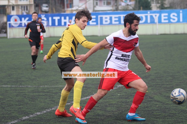 İlk yarı boyunca gol arayan Şişli temsilcisi aradığı gole 45. dakikada ulaştı. Vahap Deniz sol çaprazdan sert şutunu Hakan Kalyoncu çok güzel çeldi fakat meşin yuvarlak Evren Sazaklıoğlugil’in önüne düştü. Evren çok güzel bir plase ile takımını 1-0 öne geçirdi. Devre ev sahibinin 1-0 üstünlüğü ile kapandı.