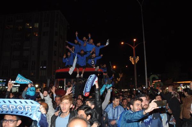 Aralarında Belediye Başkanı Kamil Saraçoğlu, Ak Parti Milletvekili İshak Gazel’in de bulunduğu binlerce Kütahyalı dün gece Zafer Meydanı’nda toplanarak Isparta’dan gelen Kütahyasporlu futbolcuları, teknik heyeti ve yöneticileri coşkuyla karşıladı. Kütahyasporlu futbolcular otobüsün üzerinden taraftarlarını selamladı.