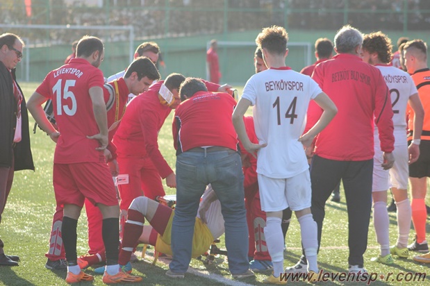 90. dakikada ceza sahasına yapılan ortada kaleci Ufuk ile Ramazan çarpıştı. Her iki futbolcu da kısa süreli sakatlık yaşarken, Beyköy Belediyespor’un kalecisi Ufuk yerden biraz geç kalktı. Saha kenarında bulunan doktor, kalecinin oyuna devam etmemesi gerektiğini bilincinin tam anlamıyla yerinde olmadığını söyledi. Düzce temsilcisi 3 oyuncu değişikliğini yapsa da futbolcu arkadaşları kalecinin oyundan çıkmasını istedi ama kaleci Ufuk oyunu terk etmek istedi. Karşılaşma kaldığı yerden devam ederken 3 dakika sonra Ufuk’a atılan geri pası kaleci taça gönderdi ve kendini yere bıraktı. Ufuk oyun alanını sedye ile terk edip ambulans ile hastaneye kaldırılırken kaleye Soydan geçti. 8 dakikalık uzatma bölümlerinde kalecisiz 5 dakika mücadele eden Beyköy Belediyespor kendi yarı alanında pas çevirdi. 5 dakika boyunca Leventsporlu futbolcular rakiplerine basmayarak son düdüğün gelmesini bekledi. Bu hareket karşısında Leventsporlu futbolcular alkışı hak ederken mücadele de 2-0 sona erdi.