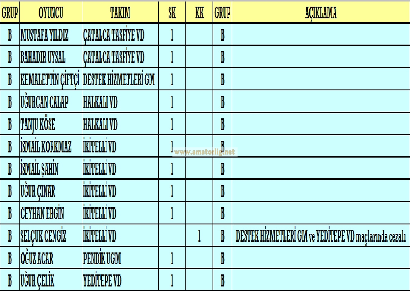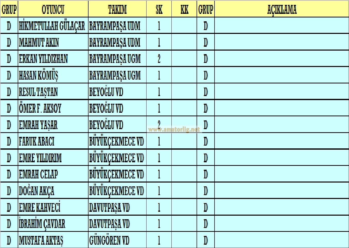 – B Grubu’nda oynadığı 2 maçta 4 sarı ve 1 kırmızı kart gören İkitelli VD ile C Grubu’nda 4 maçta 7 sarı ve 1 kırmızı kart gören Ümraniye UGM turnuvanın geride kalan 4 haftalık kısmında en sert takımlar oldular.