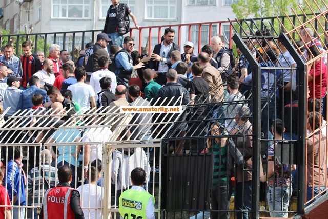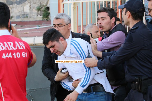 Bu olaydan birkaç dakika sonra kapalı tribünde bir Amedli taraftarı tespit eden Karagümrüklüler, bu kişiyi darp ettiler. Slogan atmaya yeltenen Amedli taraftarı taraftarın arasına giren birisi Komiser, 4 Spor Büro Polisi tarafından kurtarılarak saha içine alındı. Kafasından yaralanan kişi ambulans ile hastaneye kaldırıldı.