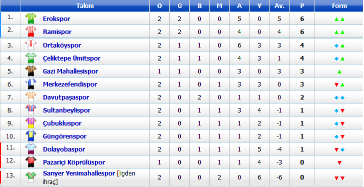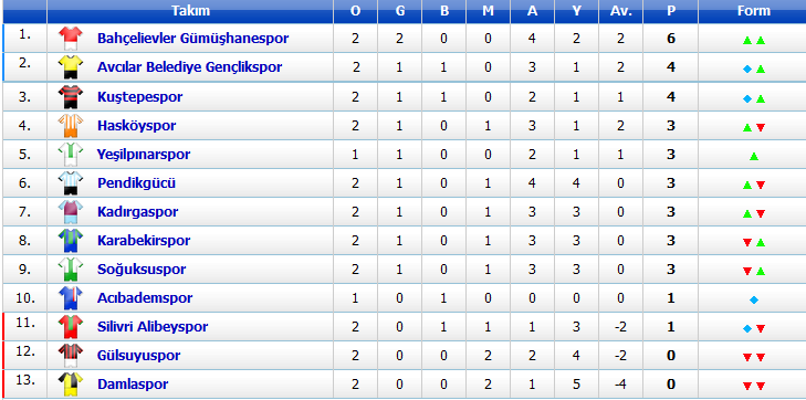 17.00 Mecidiyeköy 0-0 Alibeyköy Parseller (Seyrantepe) Bir önceki Günyamaç – Selimpaşa maçından dolayı tehir edildi)