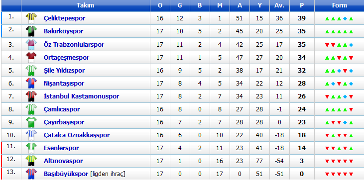 14.30 İstanbul Kastamonuspor 1-4 Çayırbaşıspor (F. Mimar Sinan)