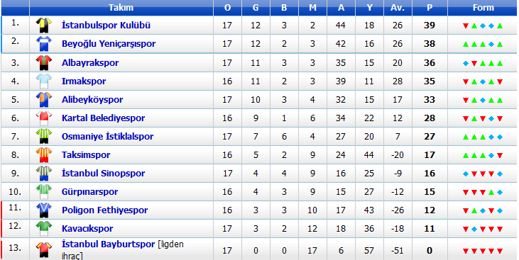 00.00 İstanbul Bayburtspor 0-3 Beyoğlu Yeniçarşıspor (Hükmen)