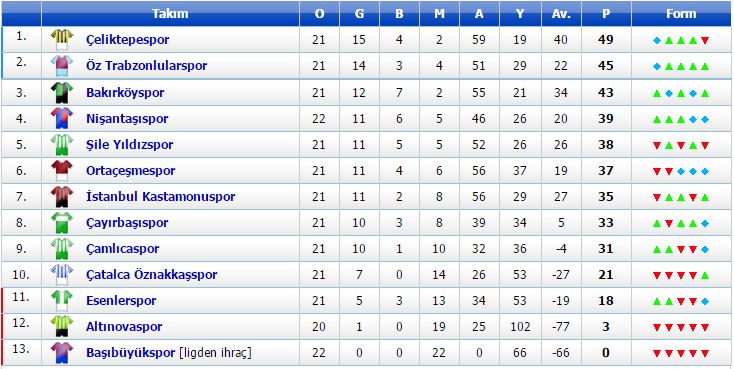 14:00 Şile Yıldız 1-3 Çatalca Öz Nakkaş (Şile)