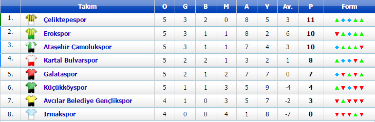 15:30 Küçükköyspor 2-3 Çeliktepespor (Avcılar Firuzköy)