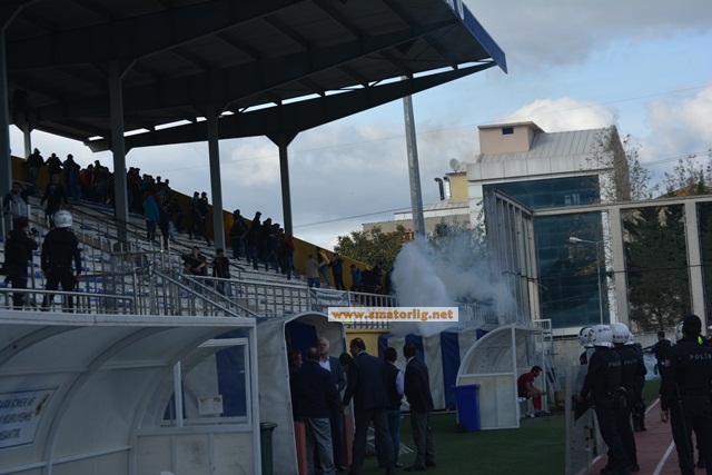 Bağcılar taraftarları döner bıçakları ve satırlarla saha dışında polise karşı geldiler. Polisin gaz bombasından etkilenen futbolcular soyunma odasına girdi. 15 dakikalık aradan sonra tekrardan sahaya çıkan iki ekip mücadeleye başlamaya hazırdı.