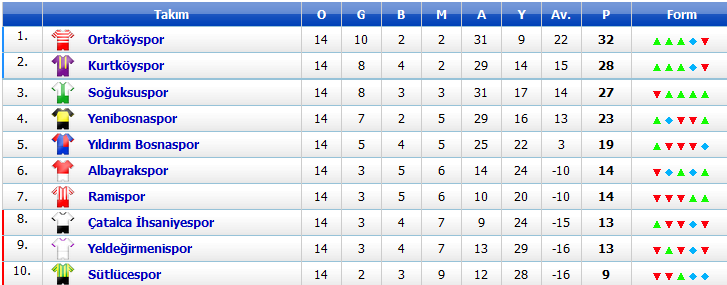 15.00 Mustafakemalpaşaspor 3-0 Kanlıcaspor (Avcılar Atatürk)