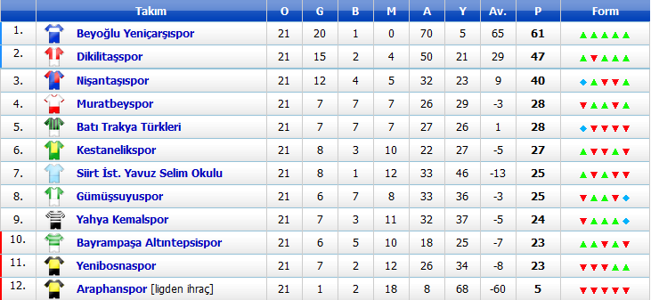 Klasman grubuna kalanlar: Beyoğlu Yeniçarşı (A Grubu), Dikilitaşspor (B Grubu)